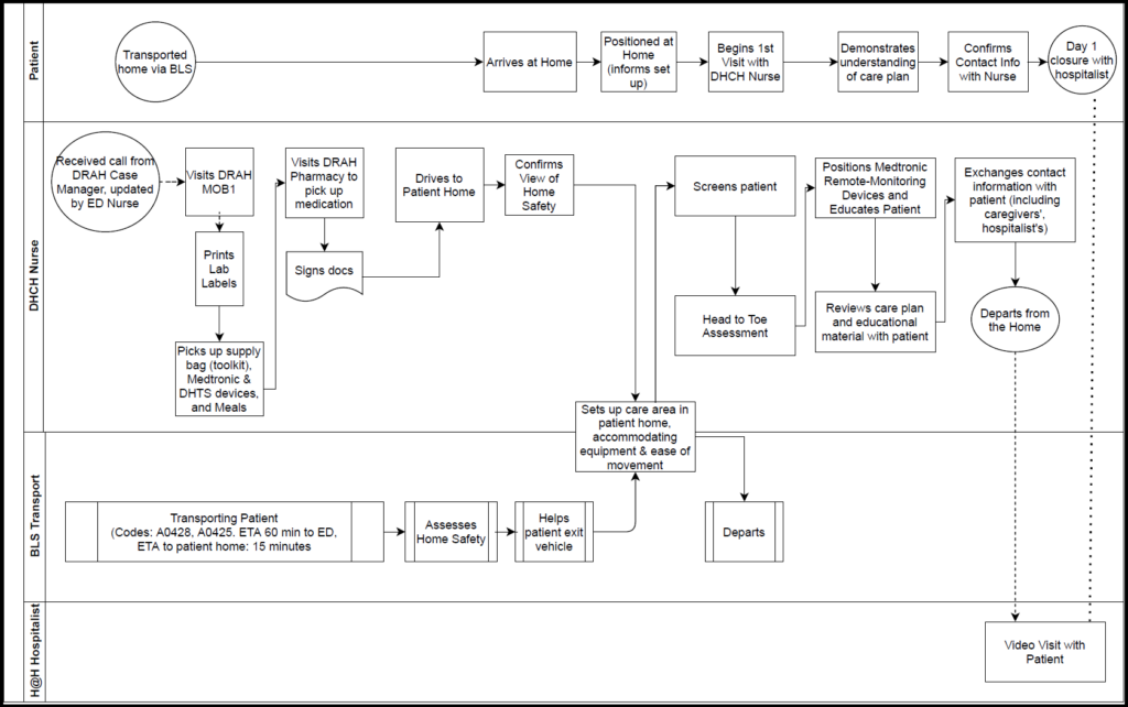 The DRAH Acute Hospital Care at Home began as a DIHI RFA 2020 proposal: Development and Implementation of a Hospital at Home Program in Wake Care, approved in February 2020. Download Executive Summary